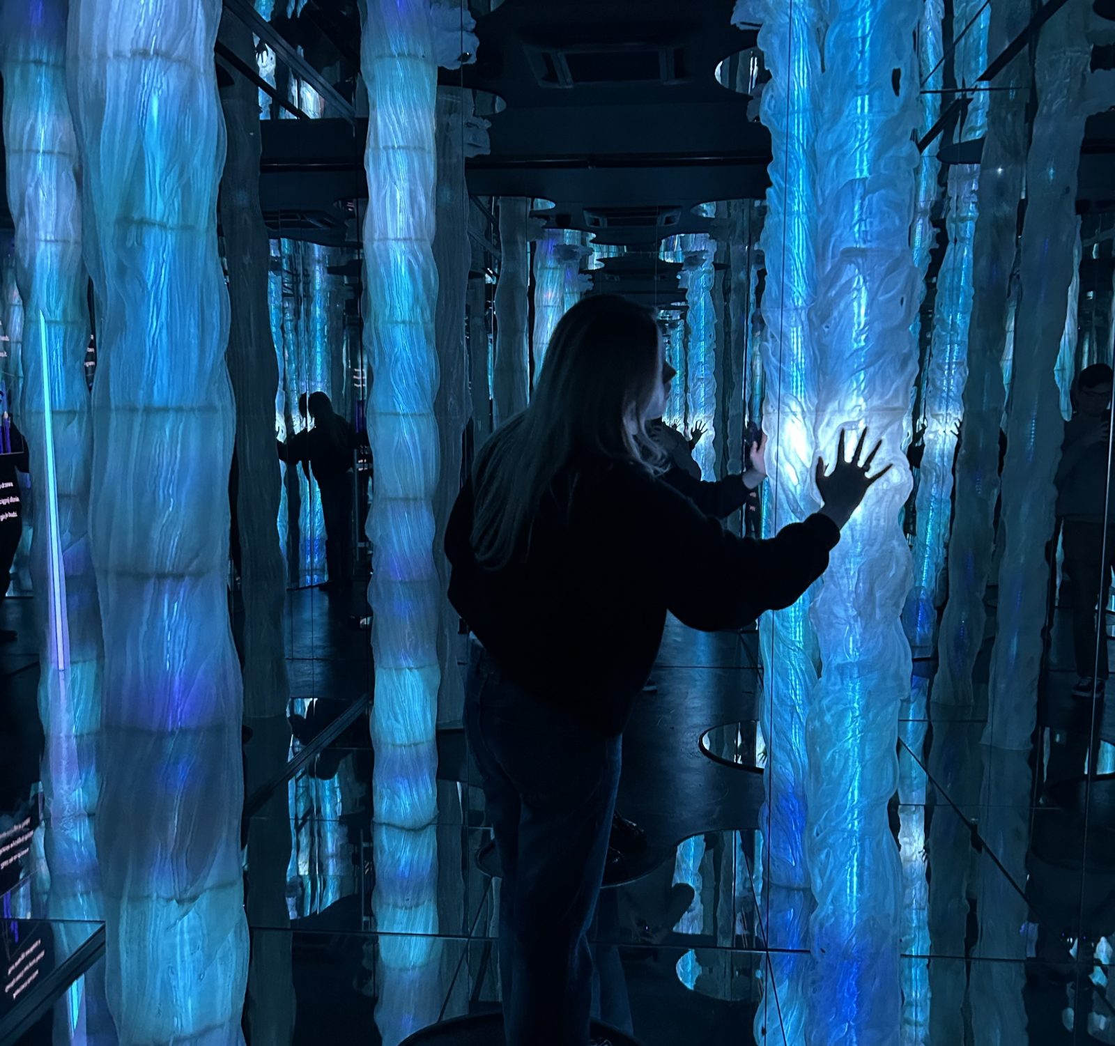 Instalacja BIOMIMESIS wpisuje się w założenia pomysłowej edukacji. Na próżno szukać w niej nieczytelnych infografik albo tony eksponatów w zakurzonych gablotach. Przekraczając próg pokoju, trafiamy do cyfrowego lasu. Choć znajdują się w nim tylko cztery drzewa, feeria refleksów i odbić optycznie powiększa przestrzeń.