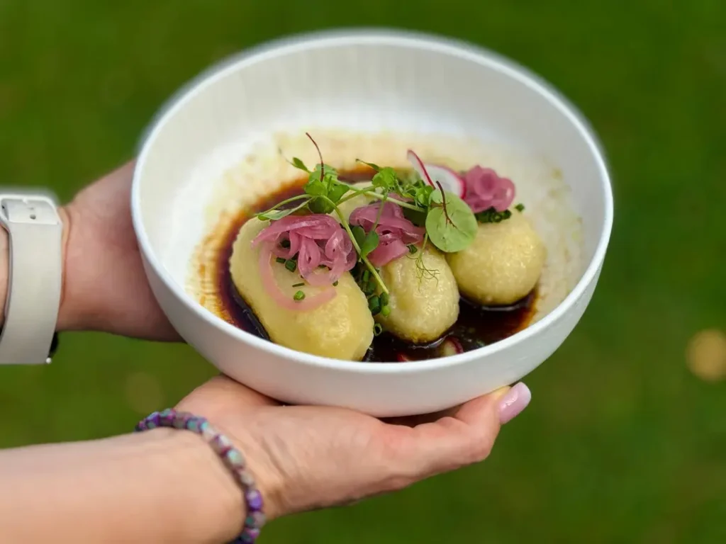 A teraz, zgodnie z rekomendacją Foodies przemieszczamy się na ul. Konną 10, do miejsca, które zachwyca nie tylko widokiem, ale przede wszystkim wyrafinowaną kuchnią. Vidok to restauracja, w której każdy posiłek staje się małym dziełem sztuki – pełnym aromatów, kolorów i zaskakujących połączeń. Tu klasyczne techniki kulinarne spotykają się z nowoczesną fantazją, a efektem są dania, które pamięta się długo po wyjściu. Specjalnie na Festiwal Chef przygotował dwie wyjątkowe propozycje. Menu A rozpoczyna się od intensywnego w smaku bulionu grzybowo-gęsiego z ravioli z ossobuco, podanego z chutneyem pomidorowym i smażonymi shimeji. W daniu głównym króluje risotto z szarpaną kaczką, z purée z modrej kapusty, edamame i pudrem z buraka. Deser to finezyjne crème brûlée o smaku rokitnika, wzbogacone sorbetem porzeczkowym i ciastkiem cygaretkowym. Menu B to z kolei gra smaków i faktur: carpaccio z dyni piżmowej z gorgonzolą i chipsem z pietruszki, delikatny karmazyn z emulsją ze skorupiaków i ziemniakami Hasselback, a na koniec subtelny Sea Buckthorn Curd z włoską bezą i cytrynowym akcentem.