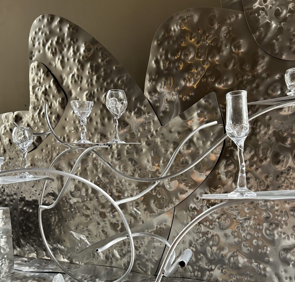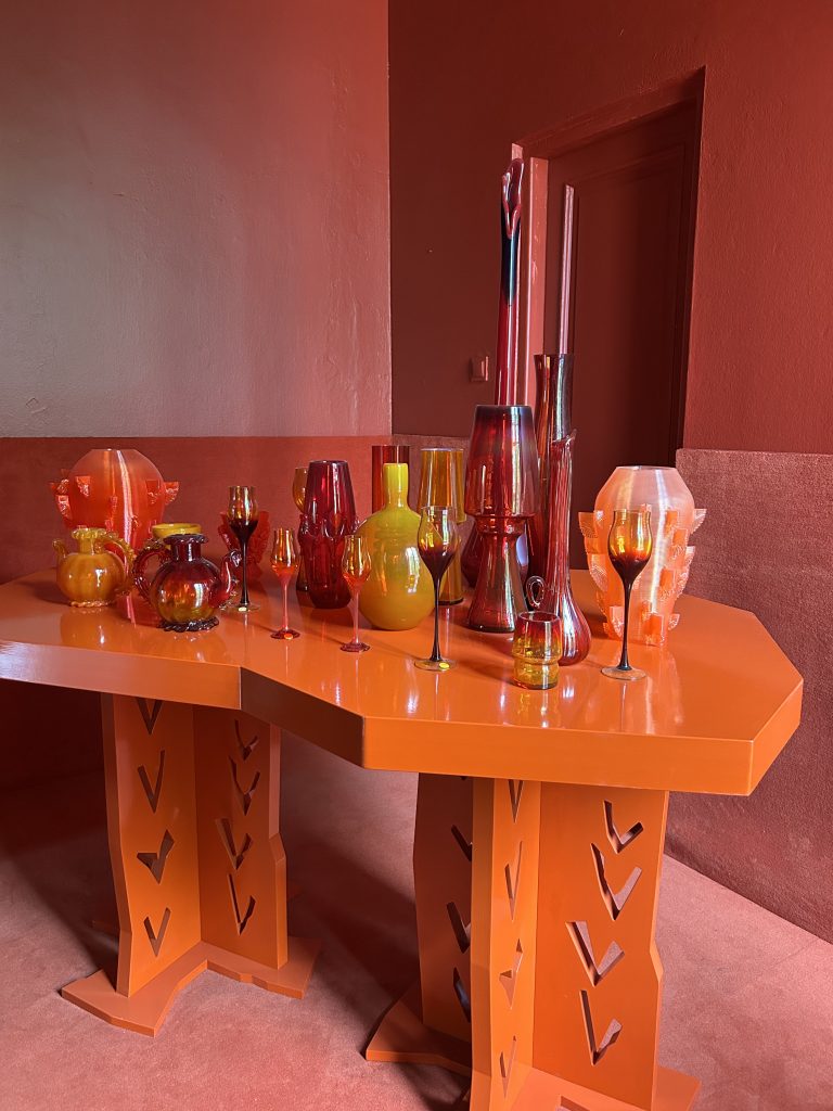 W skąpanej w pomarańczu i czerwieni sali wydruki 3D towarzyszą fikuśnym naczyniom Jerzego Słuczana-Orkusza z barwionego szkła. Tkanina Orchid Brown Magdaleny Abakanowicz wisi tuż obok minimalistycznej ceramiki Marcina Kuberny. Nie brakuje także stołów o nieregularnych, obłych kształtach, metalowych ławek, wielkoformatowych wycinanek czy efektownych kryształów wykonanych metodą slumpingu. Technika polega na formowaniu szkła w piecu elektrycznym.